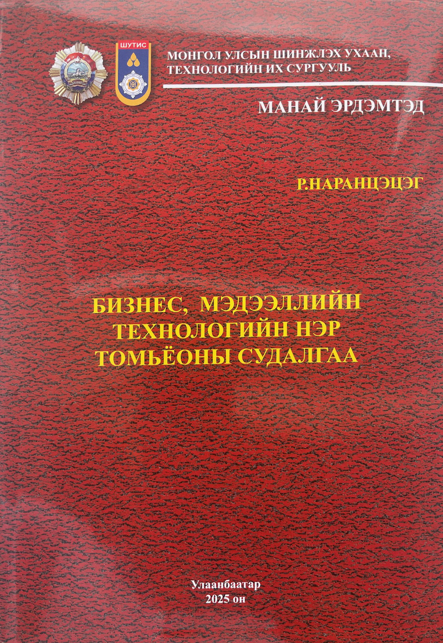 Монгол Улсад нийгэм эдийн засгийн нээлттэй бодлого баримталж, дэлхийн улс гүрнүүдтэй бие даасан гадаад бодлого, олон талт хамтын ажиллагаа хөгжин дэлгэрч буй өнөө үед англи орос хэлнээс орж ирсэн тухайлбал, бизнес, менежмент, мэдээллийн технологийн салбарын нэр томьёог оноон тогтоох, журамлан жигдлэх, хэл шинжлэлийн онол практикт оновчтой хэрэглэхэд тус судалгааны ажил зохин үр дүнгээ өгч байна. Тус бүтээлийн Нэгдүгээр бүлэгт Бизнесийн албан бичиг баримтыг төрөлжүүлэн гэрээ хэлэлцээр, албан захидал, акт, компаний дүрэм, журамд хэрэглэгдэж буй нэг томьёог бүтэц, утга зүй, өгүүлбэрийн түвшинд системтэйгээр судлан оновчтой хэрэглээг тогтоох судалгааг хийжээ. Хоёрдугаар бүлэгт мэдээллийн технологийн салбарын нэр томьёоны тодорхойлолт бүхий сэдвийн жишээн дээр тухайн салбарын нэр томьёог үгийн сан болон текст - бичвэрийн түвшинд задлан шинжилсэн судалгааныхаа үр дүнг оруулсан байна.